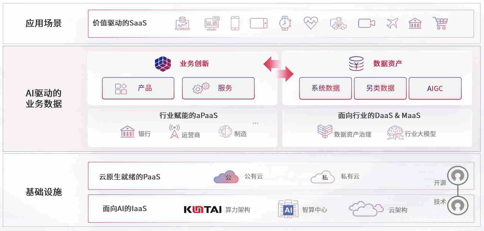 数字时代,,围绕企业数字化转型的关键要素,,,,人生就是搏数码开创性的提出数云融合战略和技术体系框架,,着力在云原生、、、、数字原生、、AI原生和信创产业上架构产品和服务能力,,,为处在不同数字化转型阶段的快消零售、、、、汽车、、、、金融、、、医疗、、、、政企、、、教育、、运营商等行业客户提供泛在的敏捷IT能力和融合的数据驱动能力,,,,构建跨界融合创新的数字业务场景和新业务模式,,助力企业级客户建立面向未来的核心能力和竞争优势,,,全面推动社会的数字化、、智能化转型升级。。。。